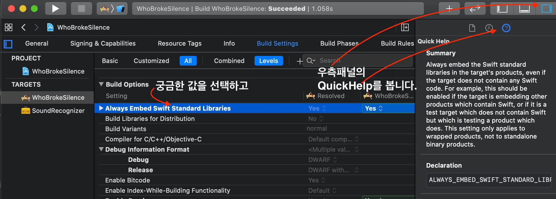 Build Setting의 값은 너무나도 많고, 각각의 값들의 의미를 파악하기란 매우 어려운 일입니다. 어떤 값들은 변수명이 직관적이어서 바로 이해 될 수도 있지만 그렇지 않은 값들도 얼마든지 있지요.