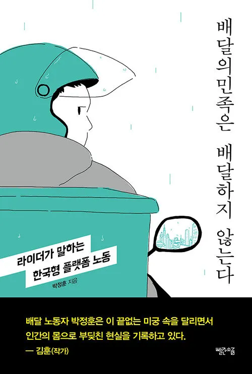 배달의 민족 오토바이를 타고 배달의 민족에서 주문한 음식을 배달하는 배달의 민족 조끼를 입은 라이더들은 누구 소속이며 어디서 월급을 받을까? 나는 궁금한 적이 없다. 당연히 배달의 민족 소속이며 배달의 민족에서 돈을 받는다고 생각했다. 그러나 『배달의 민족은 배달하지 않는다』 를 통해 알게 된 실상은 훨씬 복잡하다.