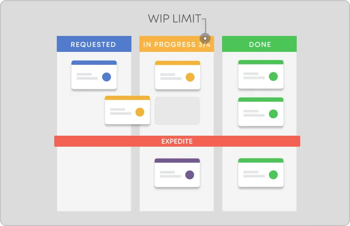 칸반보드등을 활용해 WIP 를 가시적으로 확인할 수 있다. 이를 활용해 WIP의 개수를 조절하는 것은 중요하다