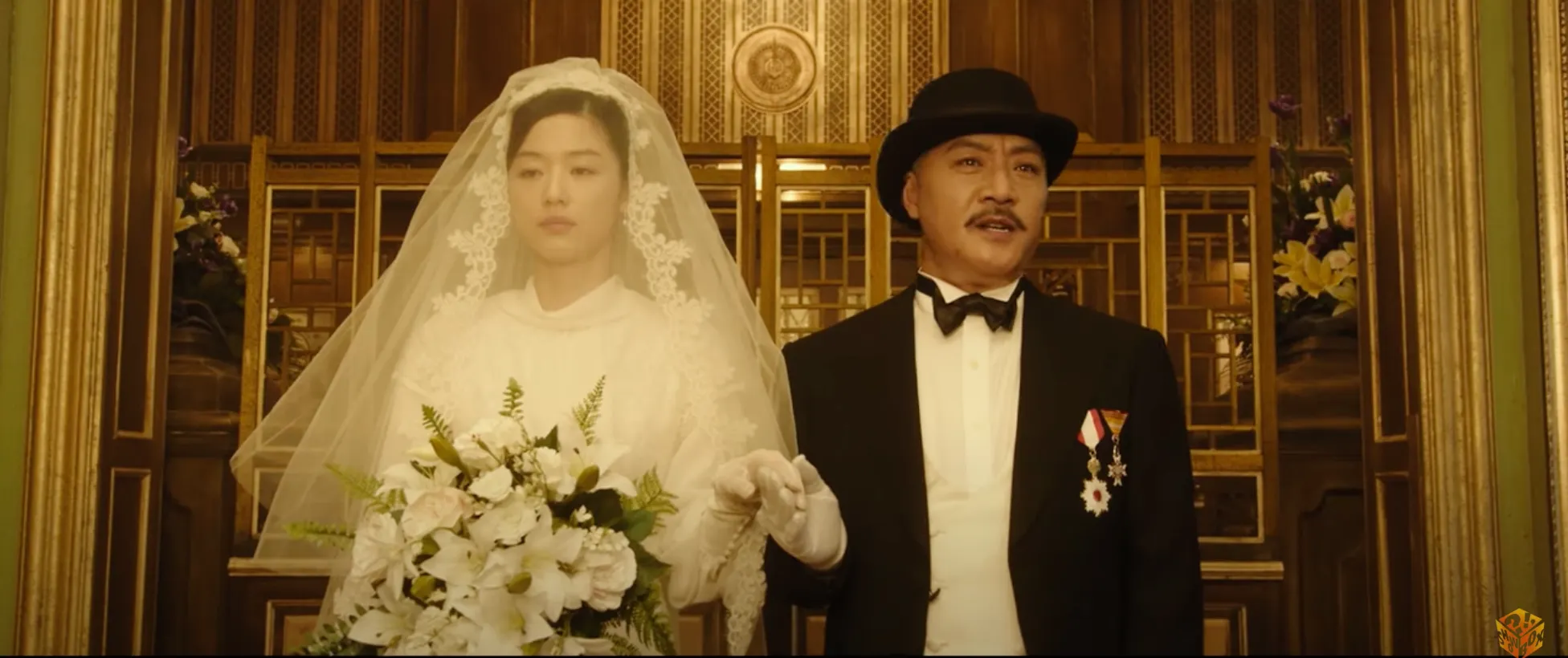 조금 더 구체적으로 들어가 분석해보자. 결혼식 장면은 강인국이 결혼식 입장 엘레베이터에서 미츠코에게 “무슨 생각하니, 미츠코?”라고 묻는 장면으로 시작한다. 안옥윤은 이에 대해 “만주에서 온 언니는 왜 죽이셨어요?” 라고 답한다. 단순히 넘어가려면 넘어갈 장면이지만, 조금만 생각해보면 안옥윤이 정말 암살자로서 작전을 수행하고 있었다면 할 수 없는 말임을 알 수있다.