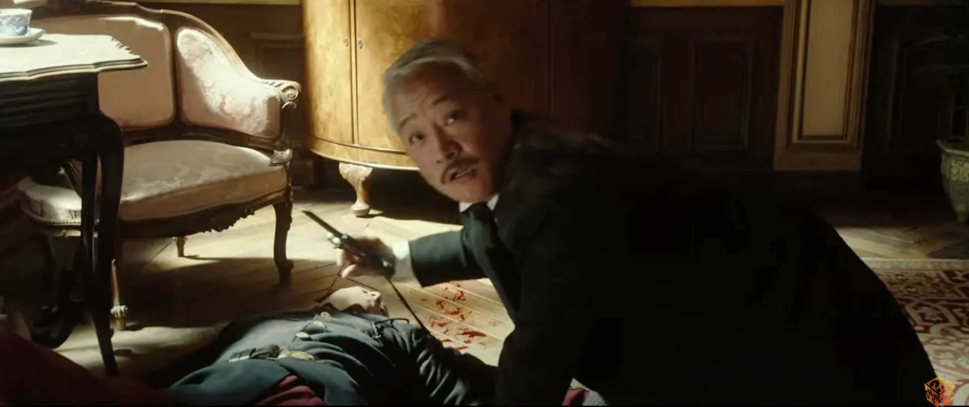 이어지는 장면에서, 카와구치에게 완력으로 제압당하기 직전의 안옥윤은 샹들리에를 겨냥해 떨어뜨린다. 번영의 상징인 샹들리에는 추락하여 무대를 일순간 화염으로 집어삼킨다. 그러나 관객이 이 화염이라는 파멸에 눈을 돌린 사이, 안옥윤은 그 격발의 잔열로 카와구치를 제압한다.