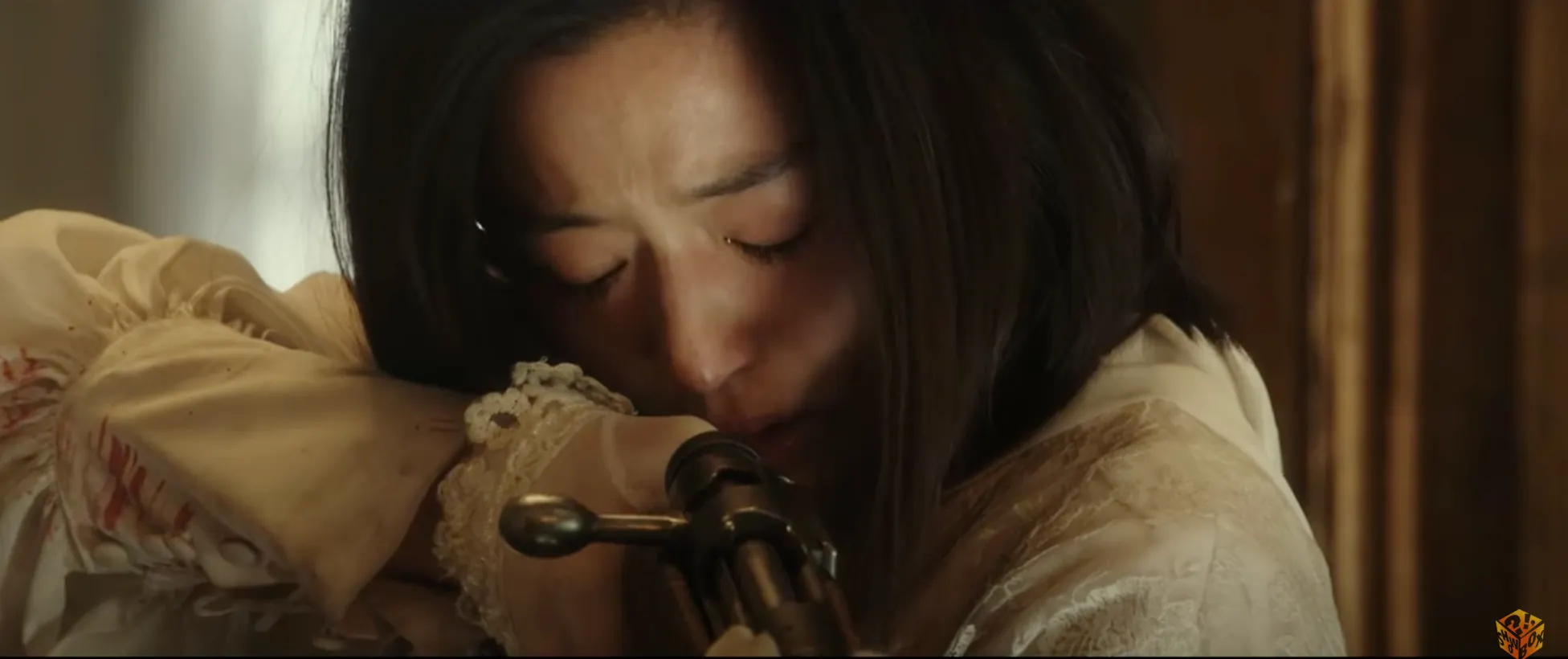 다시, 이런 상식적이지 않은 행동은 영화적 해석을 바라는 장치가 장면에 숨어있음을 나타내는 표지판으로 볼 수 있다. 그렇다고 봤을 때 가능한 해석 중 하나는 이 말을 하는 사람이 안옥윤이 아니라, 미츠코라는 것이다. 이제 조금씩 안옥윤의 눈을 통해 세상을 보기 시작한 미츠코. 따라서 다음 몇 분의 전투씬은 그저 조선이 일본에 팔려가고, 조선이 반항하는 이야기가 아니라, 미츠코가 조금씩 안옥윤이 되어가는 이야기로 읽을 수 있게 된다.