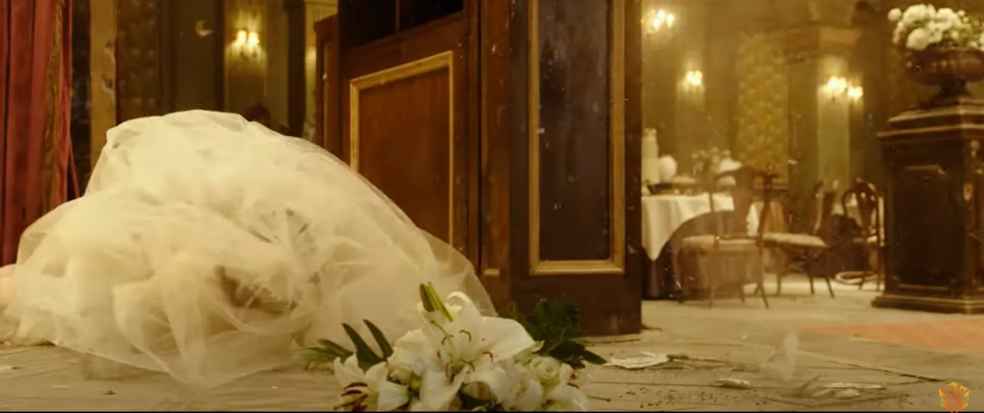 드디어 결의를 품고 부케 속에 숨겨둔 총을 격발하는 미츠코. 격발과 함께 터져나가는 부케가 묘한 쾌감을 준다.